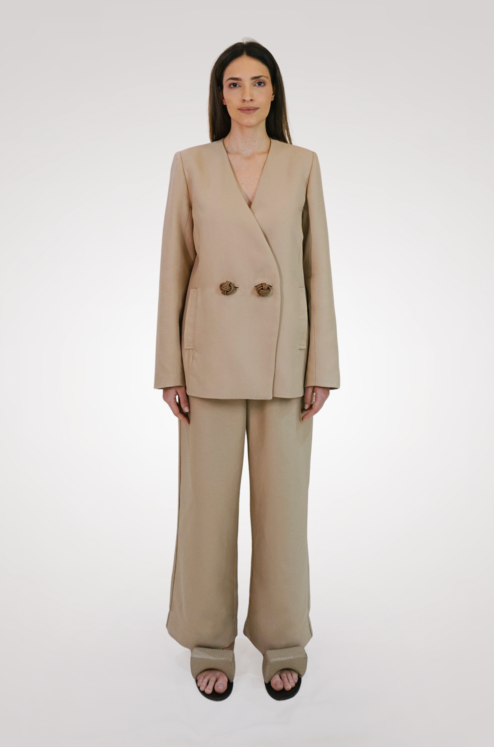 A Calça Hathor TATHO expressa a elegância da alfaiataria aliada ao conforto e à versatilidade, possui cintura média, pregas frontais sutis e caimento reto e estruturado.
